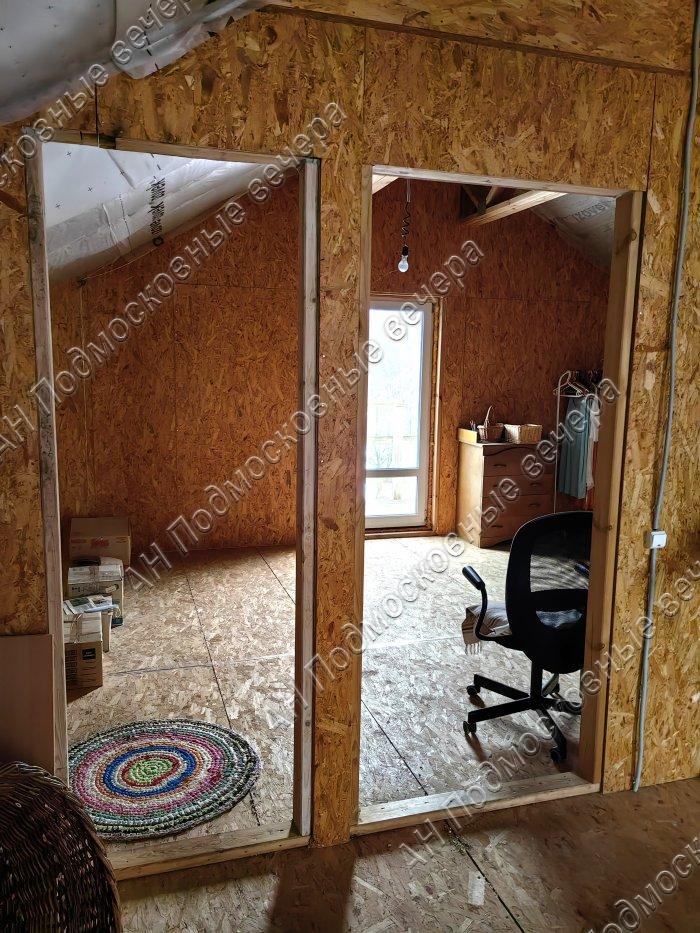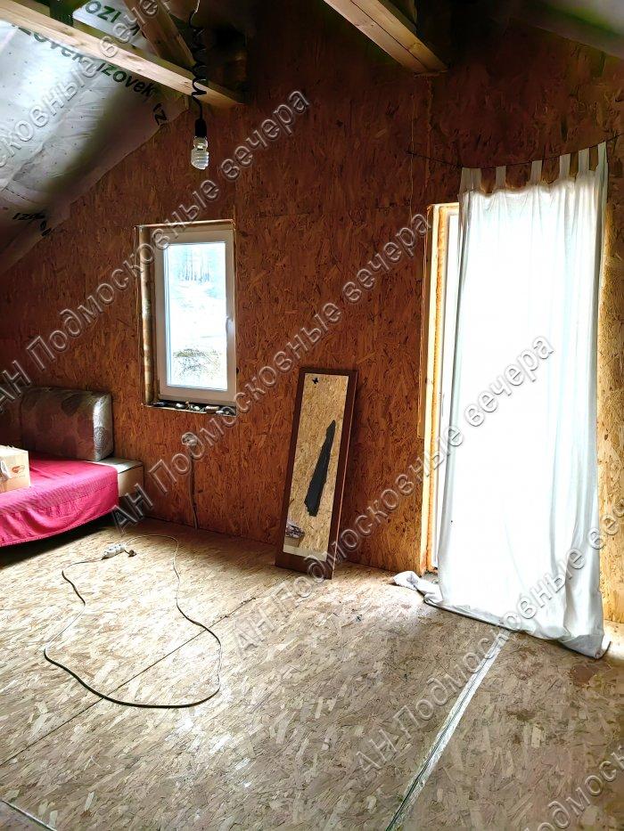 Дом 122.2 кв. м, 2 этажа, каркасный, утепленный, перекрытия деревянные, окна пвх, кровля металлочерепица; наружная отделка - фактурная штукатурка; внутри под чистовую отделку, коммуникации разведены по дому; газовое отопление. Планировка: 1-й этаж - кухня - гостиная, спальня, прихожая, санузел; мансарда - 3 спальни.